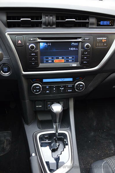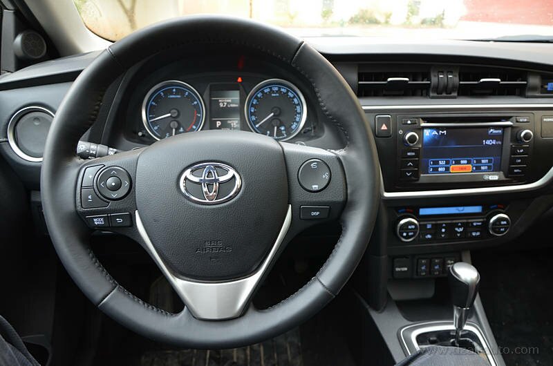 من الداخل، التغيير في Auris يمكن ملاحظته بشكل خاص تحسين نوعية المواد. ومع ذلك، فإن Auris الجديدة تظهر واسعة و مضيافة وممتعة في مكان القيادة وقد تم تصميم الكونسول الوسطي من أجل الابهار وجعل ادوات التحكم هي في متناول اليد.