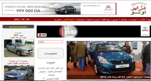 www.dzairauto.com a désormais sa version arabe (www.dzairauto.com/ar). Une initiative qui se justifie d'elle-même, au vu de de la tendance de plus en plus poussée vers la langue arabe qui se manifeste explicitement chez le lectorat algérien.