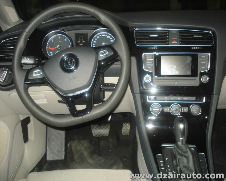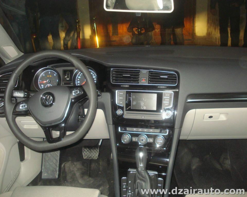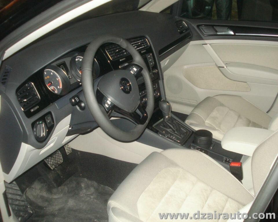 - Golf 7 Confortline : 2 499 000 DA TTC (Equipements Trendline + régulateur/limiteur de vitesse, circuit d'éclairage automatique des phares avec éclairage jour, fonction "Leaving home" et fonction "Coming home" manuelle, tiroirs sous les sièges avant, détecteur de pluie, volant cuir multifonction (3 branches), blocage électronique du différentiel XDS, sièges confort à tissu dessin "Zoom" et soutien lombaire à l’avant, vide‐poches avec volet dans le pavillon, éclairage d'ambiance, climatiseur "Climatronic" avec régulation de température 2 zones, 2 lampes de lecture à DEL à l'avant avec encadrement en chrome et 2 à l'arrière, phares antibrouillard et feux de bifurcation, déverrouillage du siège arrière, encadrement en chrome de la commande rotative d'éclairage, applications en chrome sur la commande de rétroviseurs, pommeau de levier de vitesses gainé cuir et jantes en alliage léger 16˝ "Toronto" (style à 5 branches doubles) surface tournée brillante, applications décoratives "argent foncé brossé" pour tableau de bord du côté conducteur ainsi que pour la console centrale et revêtements de portes.