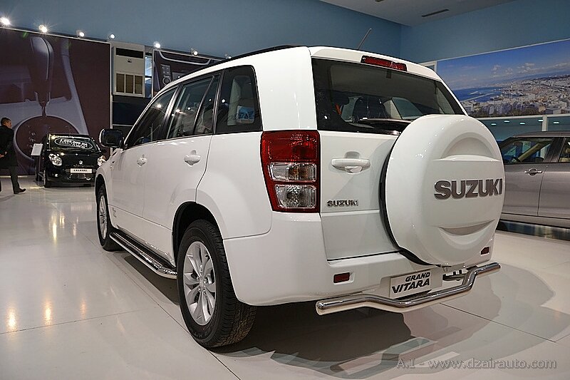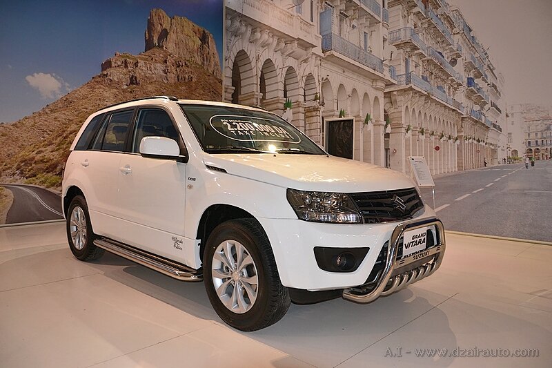 Face au trio Alto 800, Celerio et Swift DZire présentées en différentes finitions, le Grand Vitara restylé semble avoir pris la place du grand frère qui veille au grain sur le stand Suzuki, à l’occasion du salon de l’automobile d’Alger 2013.