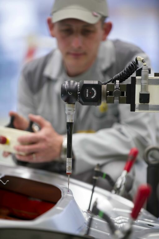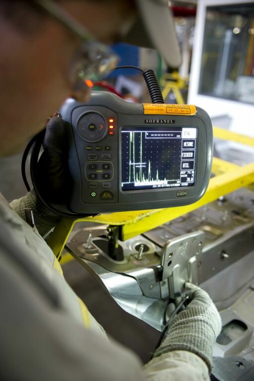La tenue des points de soudure est contrôlée selon un plan de surveillance robuste. Chaque point de soudure des pièces prélevées est mesuré avec un ordinateur portable muni de capteurs ultrasons. On déplace le capteur sur le point de soudure et cela donne un spectre électronique qui doit correspondre à un spectre de référence pour être validé. S’il ne correspond pas, le point de soudure est repris et la cause est identifiée pour être corrigée. L’usine de Maubeuge est équipée de cet appareil depuis 2007. 100 % des pièces embouties sont contrôlées par des opérateurs.