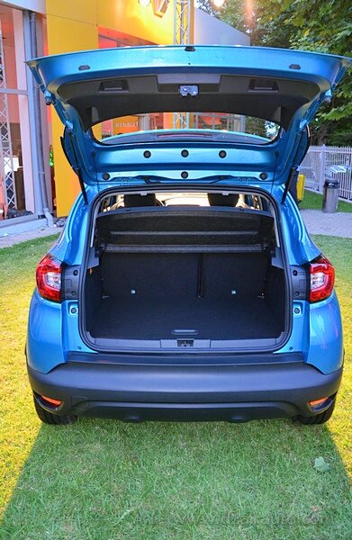 Compact par ses mesures, le Captur donne l’impression d’être plus grand que cela par ses formes et plus spacieux par son intérieur à plusieurs facettes d’ergonomie, de style et de praticité. Citons, entre autres la banquette arrière coulissante sur 16 cm, les 377 à 455 litres de volume du coffre ou encore les différentes espaces de rangements totalisant 27 litres de volume.