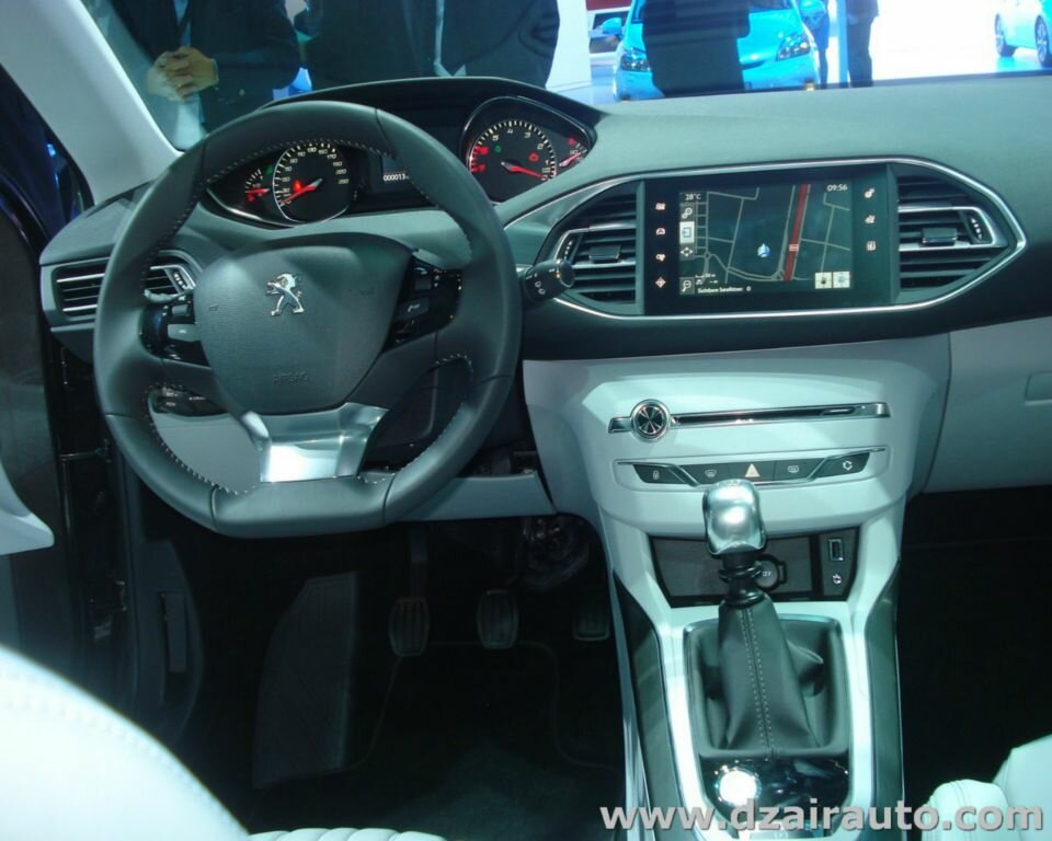 L’habitacle de la nouvelle 308 reproduit le principe du cockpit introduit par la jeune sœur 208. Les instruments sont à portée de main au-dessous d’un petit volant. Fait inédit, le compte-tours de la nouvelle compacte Peugeot fonctionne dans le sens opposé des aiguilles d’une montre. Notez aussi la présence d’un frein de parking électrique et l’écran tactile 9,7 pouces qui permet de commander la navigation, l'installation.
