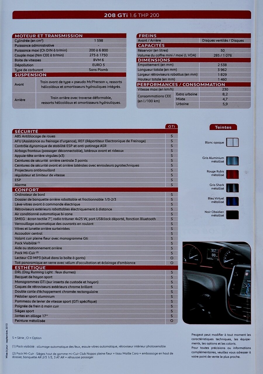 Fiche technique : Peugeot 208 GTI - 1.6 THP 200 Ch