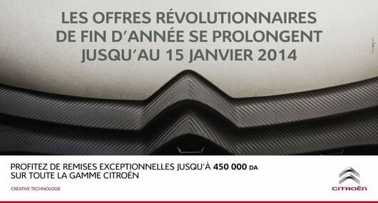 Les remises de fin d’année se poursuivent chez Saida Citroën sous escorte du slogan « Les offres révolutionnaires. Mieux encore, le représentant de la marque aux chevrons a décidé de prolonger sa campagne au-delà du 31 décembre, date limite préalable, et de la porter jusqu’au 15 janvier 2014.