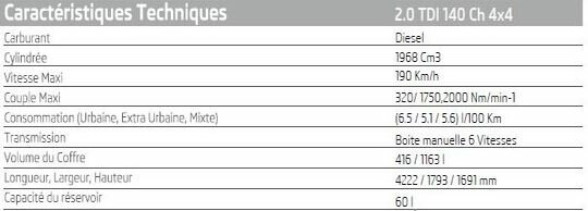 Une seule motorisation figure sur l’offre de Sovac, en l’occurrence le 2.0 TDi 140ch 4x4, associé à une boîte manuelle.