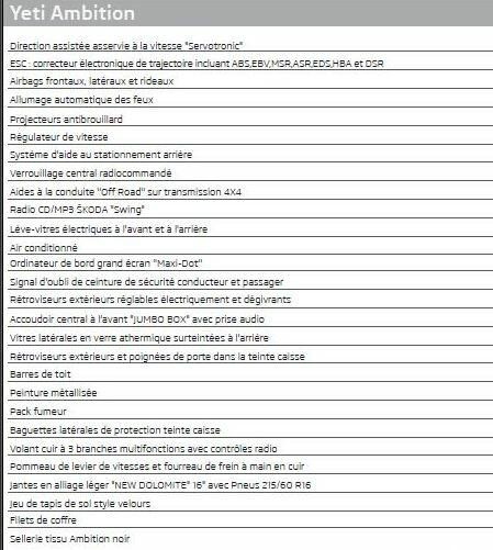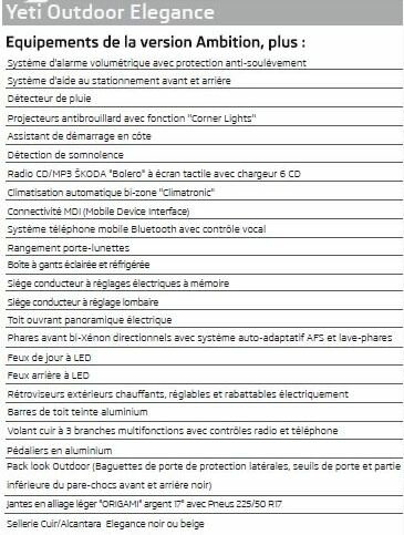 "je possède une skoda yeti élégance année 2014 franchement y'a rien à dire coté confort désign c'est le top ca c'est une voiture de luxe ."
