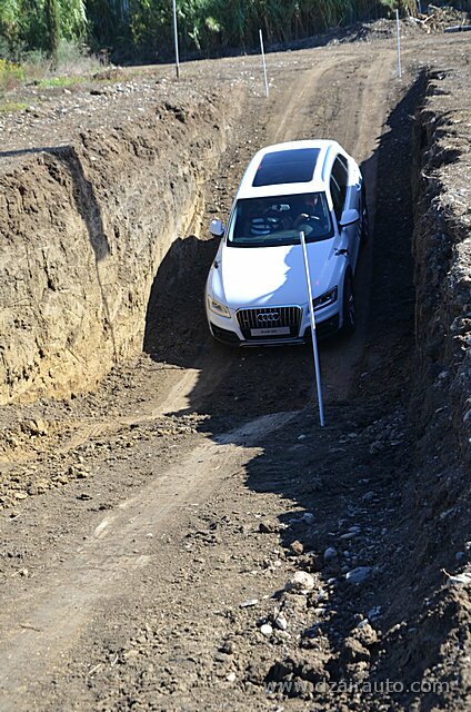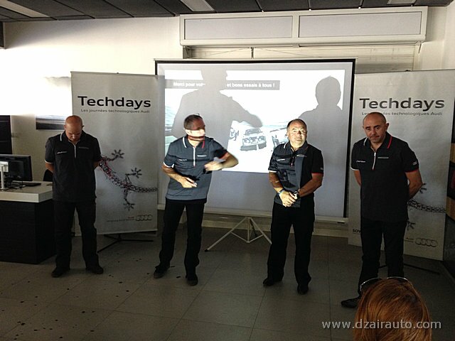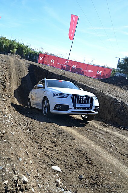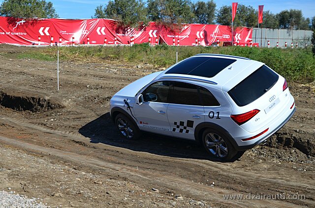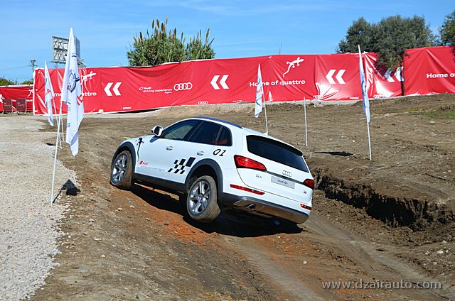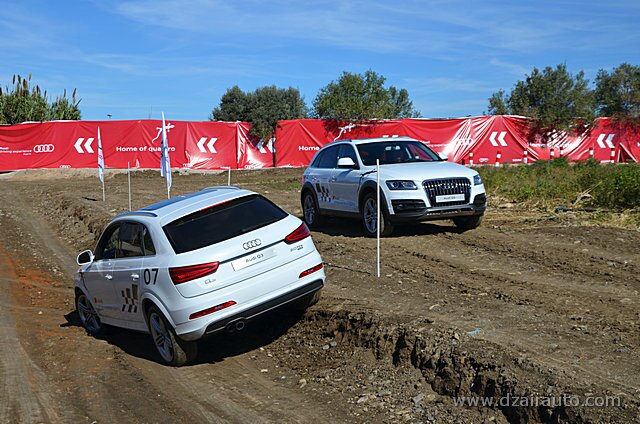 Pour ce faire, trois ateliers ont été mis en place, sous la houlette d’experts venus de chez Audi France. L’atelier dédié à l’Off Road permet aux invités privilégiés de s’initier aux techniques des franchissements au volant des Q5 et Q3, celui consacré aux évitements et freinage d’urgence a fait appel à la A3 1.8 TFSI et une S3, alors que le troisième atelier offre une opportunité de s’initier, à bord d’uneA3 4 portes, aux innovations technologiques du constructeur allemand, tels l’Audi Park Assist, l’Audi Drive Select, le Hill Descent Control.