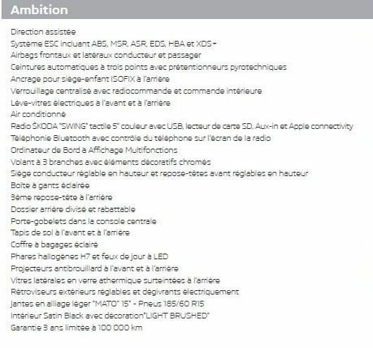 Equipements de la nouvelle Fabia