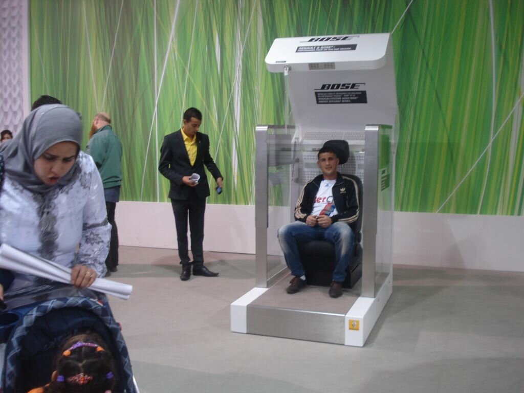 Renault est manifestement présent au quatorzième salon de l’automobile d’Alger pour faire découvrir ses modèles mais aussi pour se faire entendre. La sonorisation installée sur trois de ses modèles fait vibrer le pavillon de la marque au losange aux décibels et à la technologie Bose. De nombreux amateurs et de curieux se rendent donc très naturellement chez Renault pour voir les nouveautés et écouter de la musique.